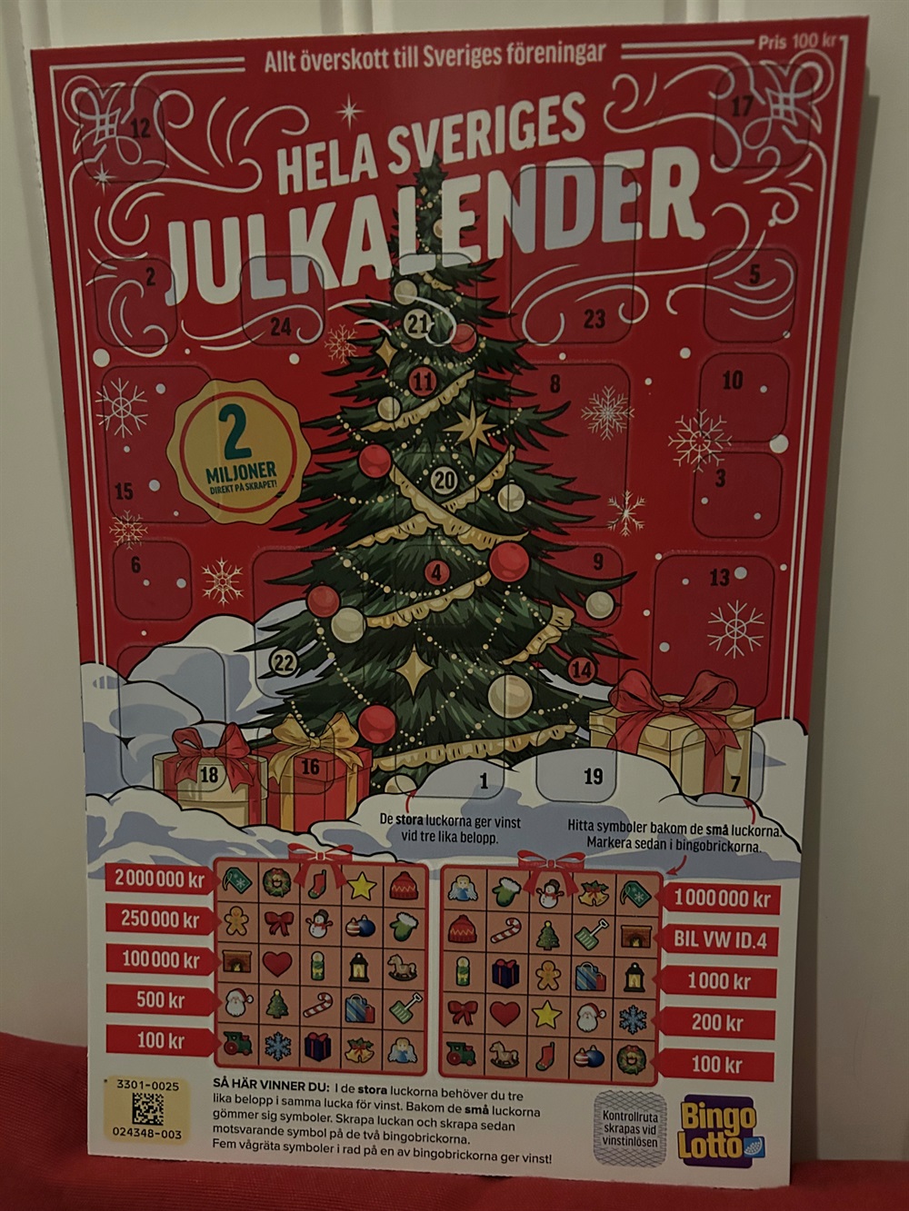 Sälj kalendrarna för 100 kr styck, eller behåll dem och skrapa själv.